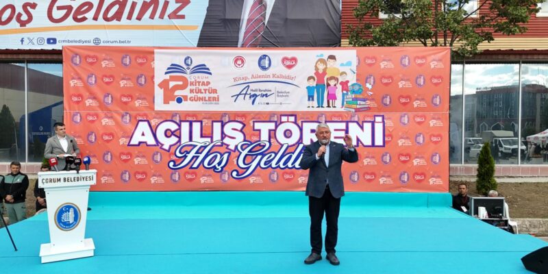 Açılış töreninde konuşan Çorum Belediye Başkanı Dr. Halil İbrahim Aşgın, Anadolu’nun hem kılıçla fethedilen hem de kalemle ihya edilen bir medeniyet olduğuna vurgu yaparak, “Mevlanalar, Yunuslar, büyük kitaplar ve kütüphaneler olmasaydı; sadece kılıçla fethedilen bu topraklarda kalmamız mümkün değildi. Kılıcın kahramanlarına da kalemin kahramanlarına da selam olsun. Tarihin, medeniyetin ve geçmişimizin bizden istediği budur, biz de bunları yapmaya devam edeceğiz. Bu nedenle 12’ncisini düzenlediğimiz Kitap Günlerini gerçekleştiriyoruz. Şu ana kadar yaptıklarımızın en güzelini, en büyüğünü ve en fazla katılım sağlanacak olanını inşallah bu yıl yapacağız. Çorum’da ve Merkez ilçemizde 1. sınıftan 8. sınıfa kadar yaklaşık 32 bin öğrencimiz bulunuyor. Her öğrencimize hediye çeki verelim ki gençlerimiz buraya geldiklerinde bir kitap alabilsin. 80’in üzerinde yayınevi, 135 söyleşi olacak. Bu söyleşilerin 35’i burada, kalan kısmı ise hem üniversitemizde hem de diğer okullarımızda gerçekleştirilecek. 10 Ekim’den 19 Ekim’e kadar, yaklaşık 10 gün boyunca kültür konuşulacak, sanat konuşulacak ve biz susacağız kitaplar konuşacak” dedi.