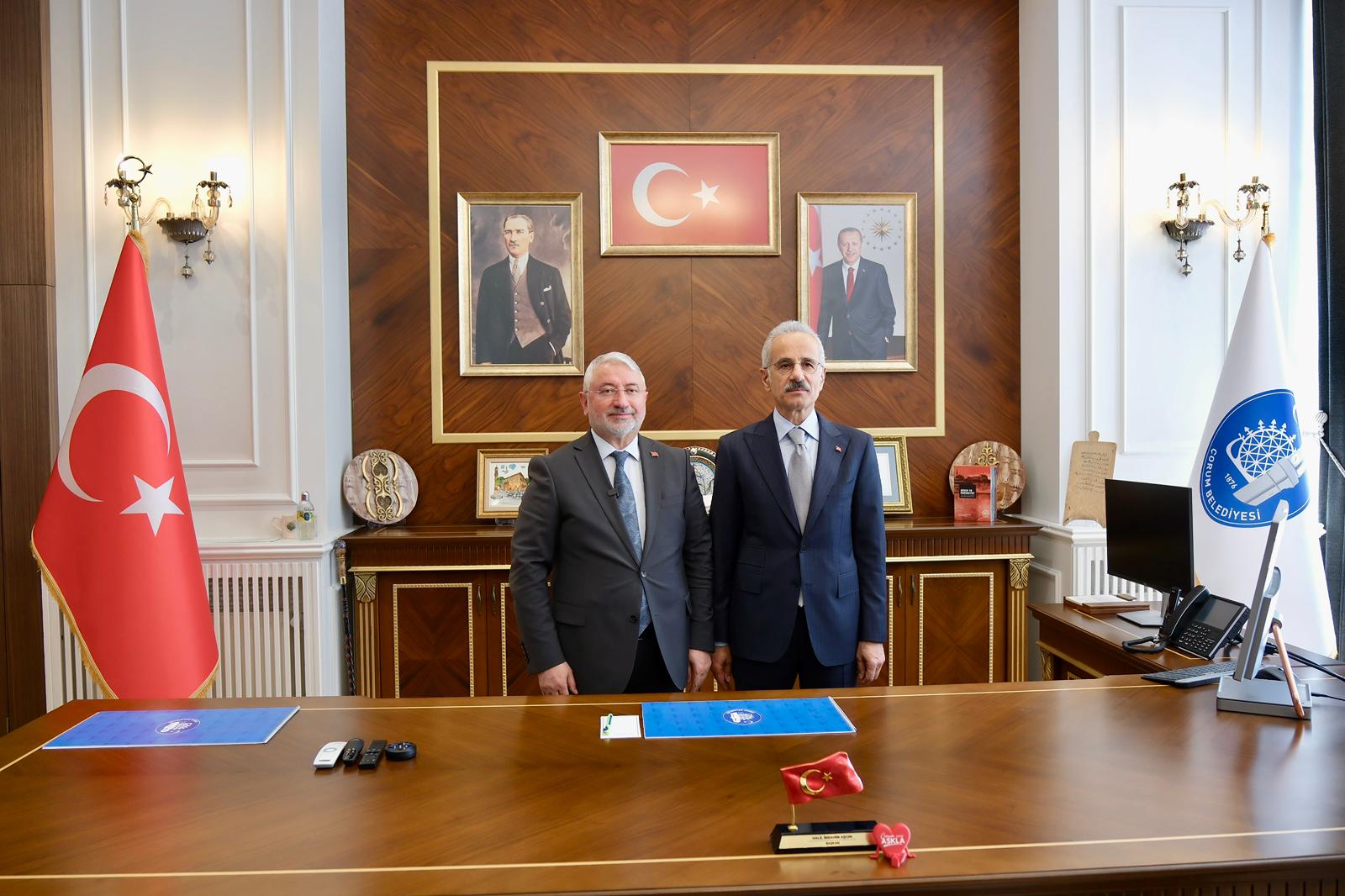 Kırkdilim Tünelleri’nin açılış programı için Çorum’a gelen Ulaştırma ve Altyapı Bakanı Abdulkadir Uraloğlu, Çorum Belediyesi’ni ziyaret ederek Belediye Başkanı Dr. Halil İbrahim Aşgın ile bir araya geldi.