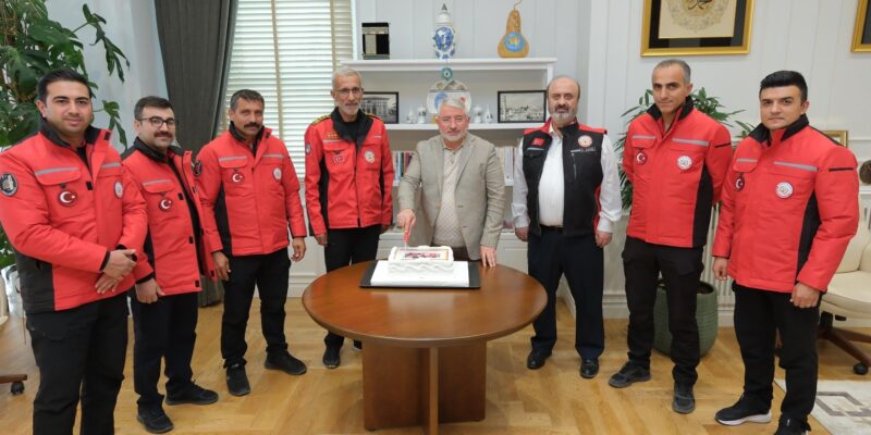 Ziyaret sonunda İtfaiyecilik Haftası anısına pasta kesildi ve İtfaiye Müdürlüğü tarafından Başkan Aşgın’a çiçek takdim edildi.