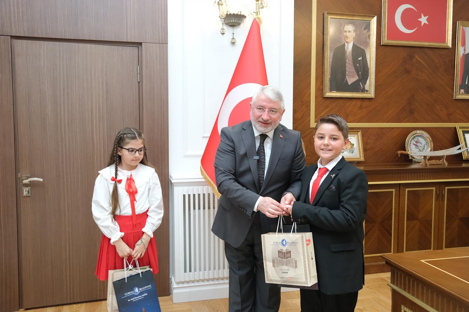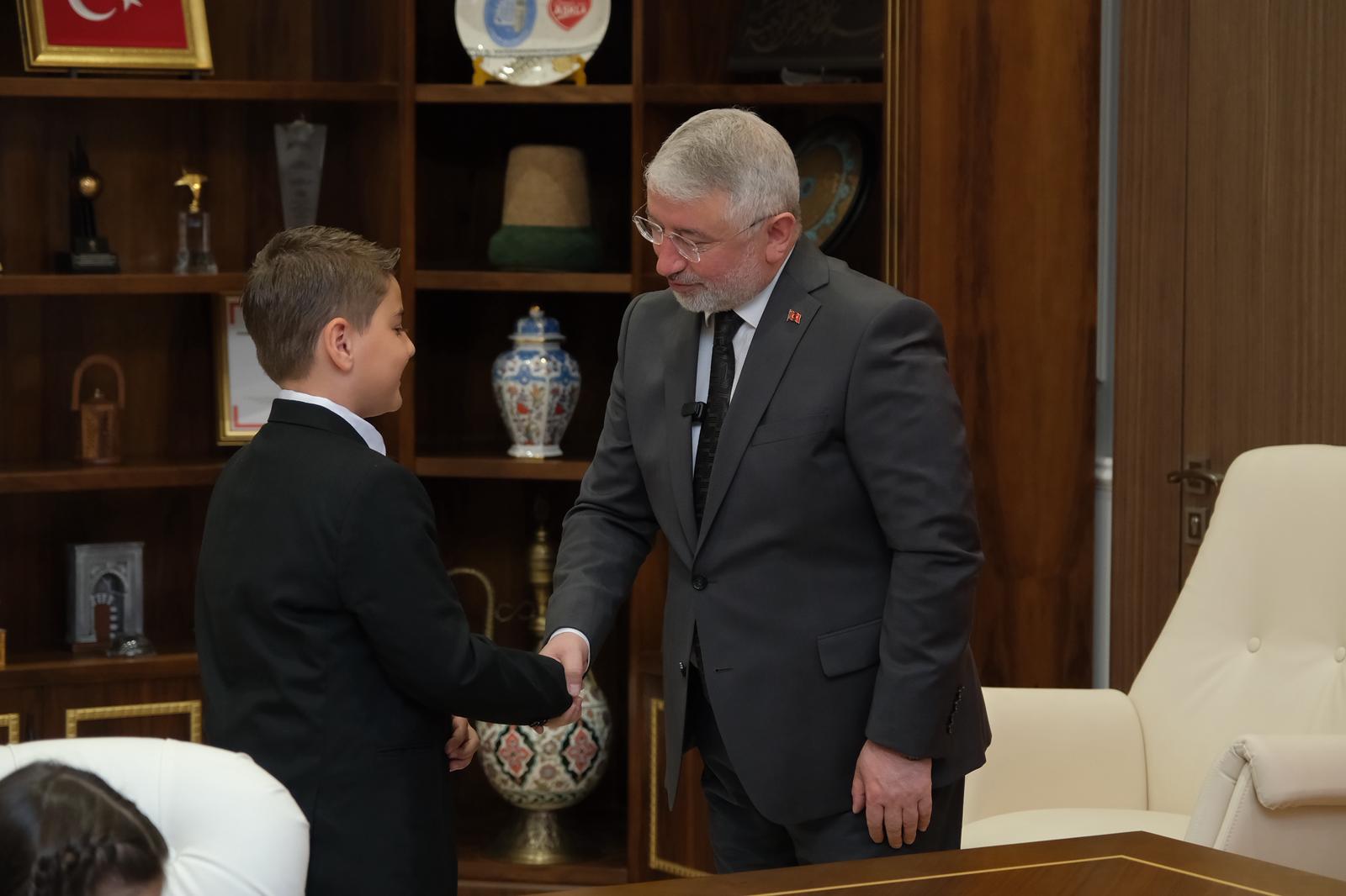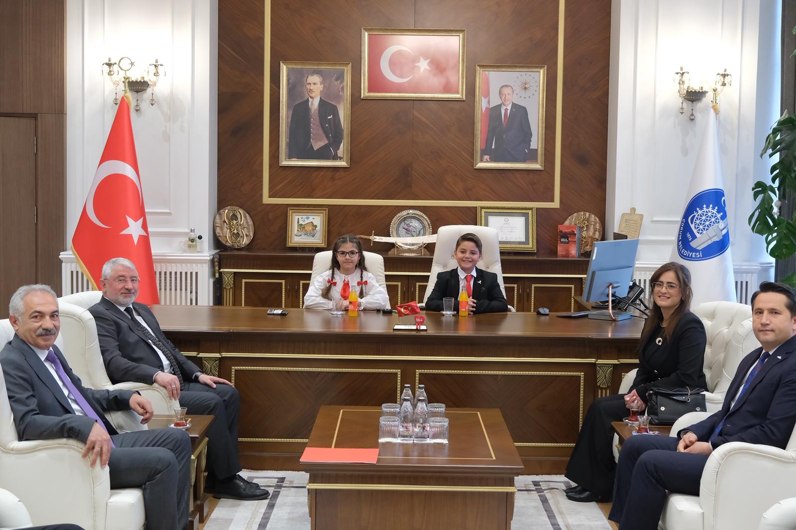İsmail Kakaç İlkokulu 4. sınıf öğrencileri Zeynep Sözten ve Rüzgar Ali Kışla, günün anlam ve önemine uygun olarak belediye başkanlığı görevini kısa süreliğine Belediye Başkanı Dr. Halil İbrahim Aşgın’dan devraldı. Beraberinde İl Milli Eğitim Müdür Yardımcısı Tahir Demir, İsmail Kakaç İlkokulu Müdürü Cemalettin Tunç ve Sınıf Öğretmeni Filiz Türk ile birlikte makama gelen öğrenciler kendilerini hazır bekleyen birim müdürlerinden isteklerini belirttiler.