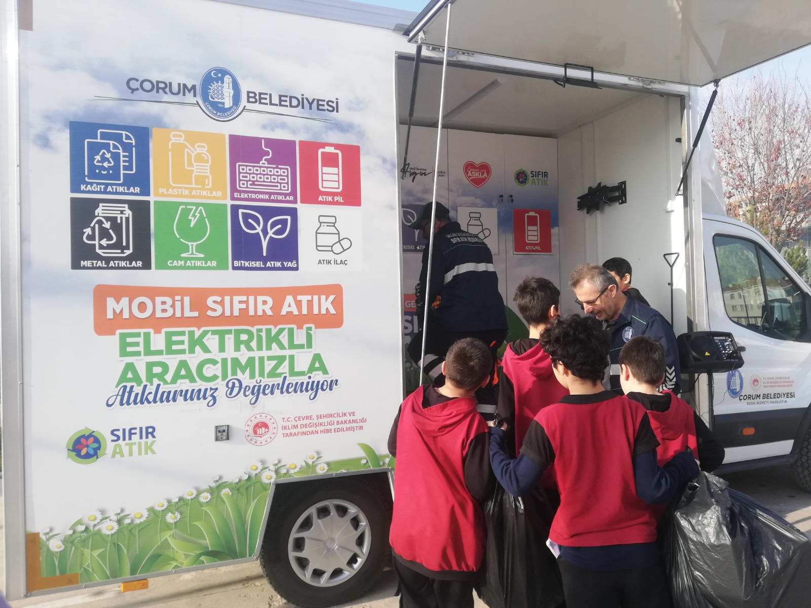 Etkinlik kapsamında öğrenciler, önceden biriktirdikleri geri kazanılabilir atıkları Çorum Belediyesi’nin Elektrikli Mobil Sıfır Atık Aracı’na teslim etti. En çok atığı teslim eden öğrenciler, iklim değişikliği ve sıfır atık simülasyonunu VR gözlükle deneyimleme fırsatı buldu ve toplama ekipmanlarını kullanarak atıkları doğru alanlara atma uygulamasını gerçekleştirdi.