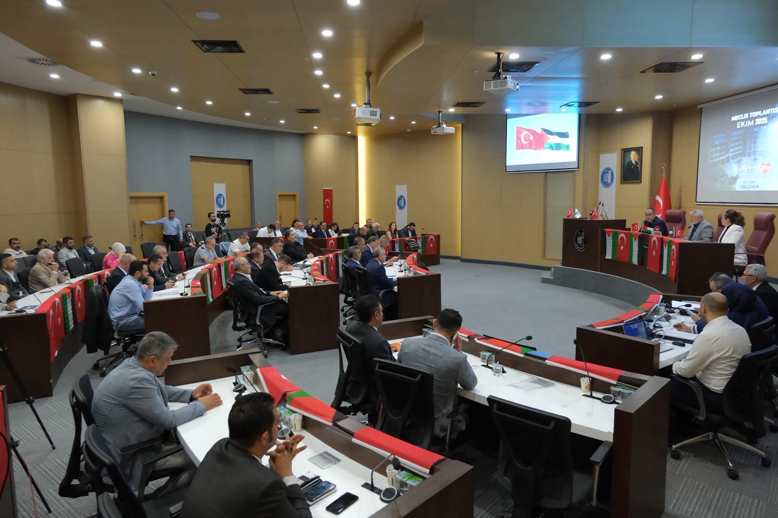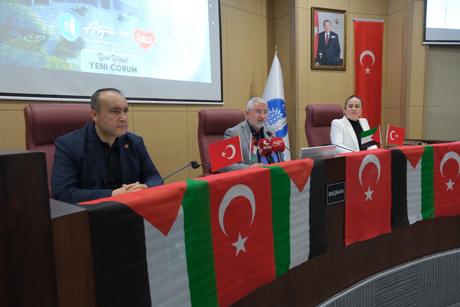 Çorum Belediyesi Ekim ayı meclis toplantısı, Türk ve Filistin bayraklarıyla donatılan Meclis Toplantı Salonu’nda gerçekleştirildi. Gazze’de yaşanan zulmün ikinci yıldönümü dolayısıyla Belediye Başkanı Dr. Halil İbrahim Aşgın, İsrail’in Filistin halkına yönelik saldırılarını ve Gazze’de devam eden insanlık dramını sert bir dille kınadı.