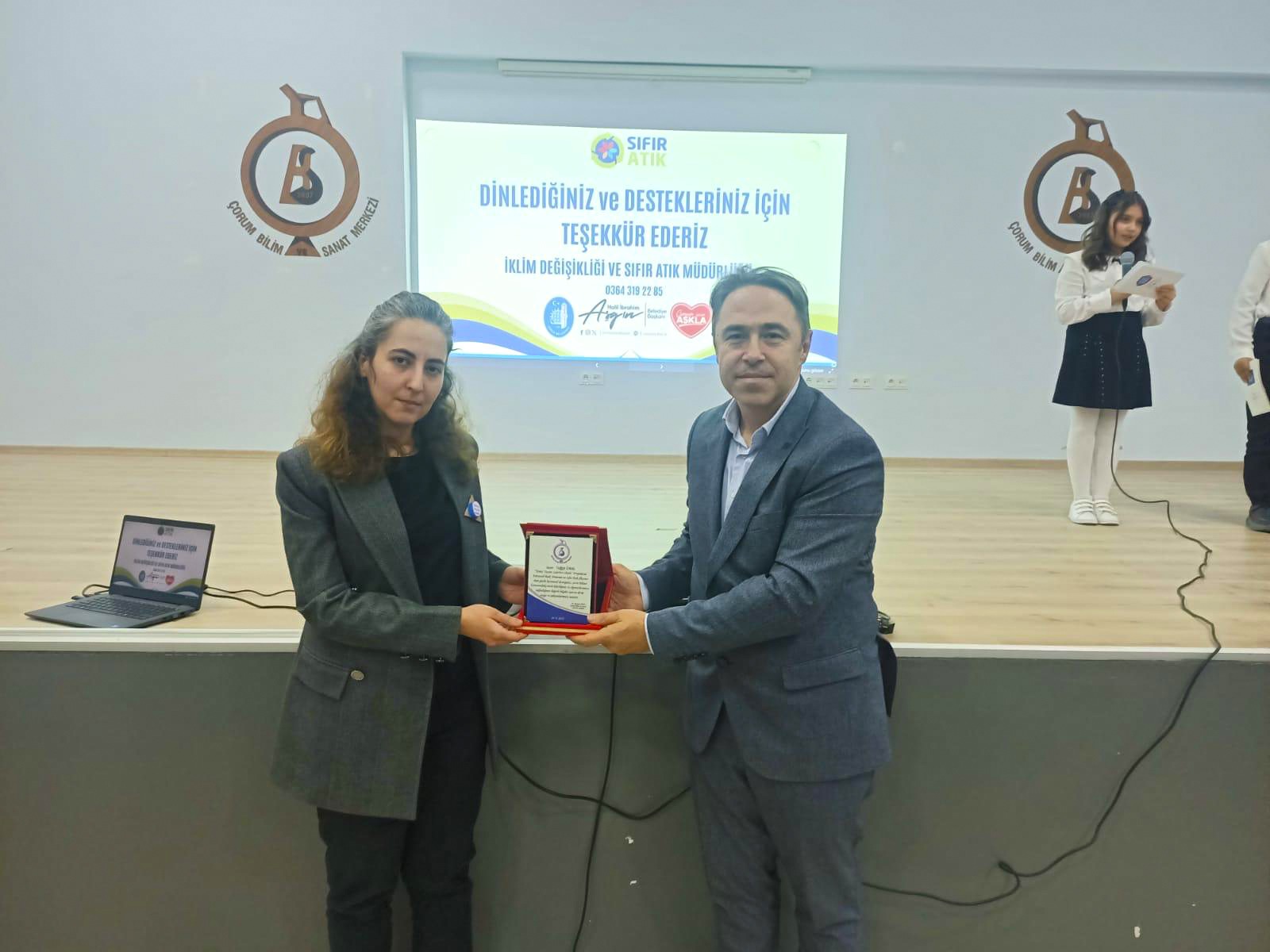 Program sonunda BİLSEM tarafından projeye katkı sunan uzmanlara Teşekkür Plaketleri takdim edildi. Ayrıca Çorum Belediyesi, naylon poşet kullanımını azaltmaya yönelik farkındalık oluşturmak amacıyla öğrencilere bez çanta hediye etti.