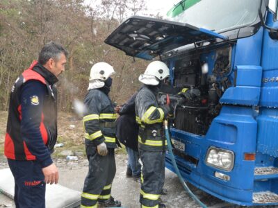Seyir Halindeki Tırın Motoru Alev Aldı