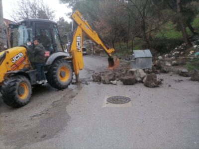 Osmancık’ta Kaya Parçaları Yola Yuvarlandı