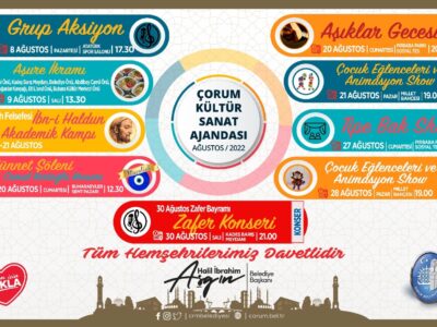 Temmuz ayında yaptığı festival etkinlikleriyle unutulmaz işlere imza atan Çorum Belediyesi, kültür ve sanat etkinliklerine tüm hızıyla devam ediyor. Vatandaşların yoğun katılımıyla gerçekleştirilen ...