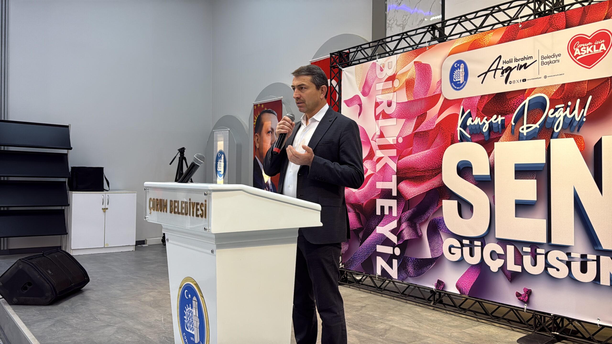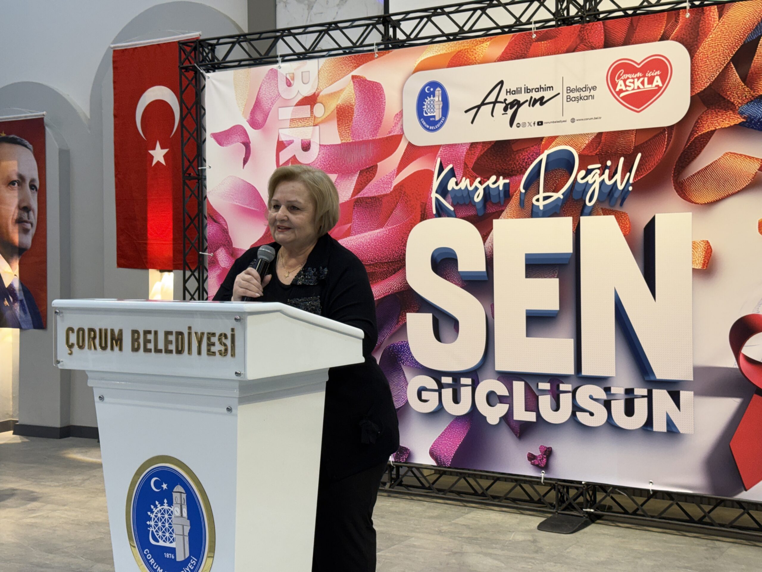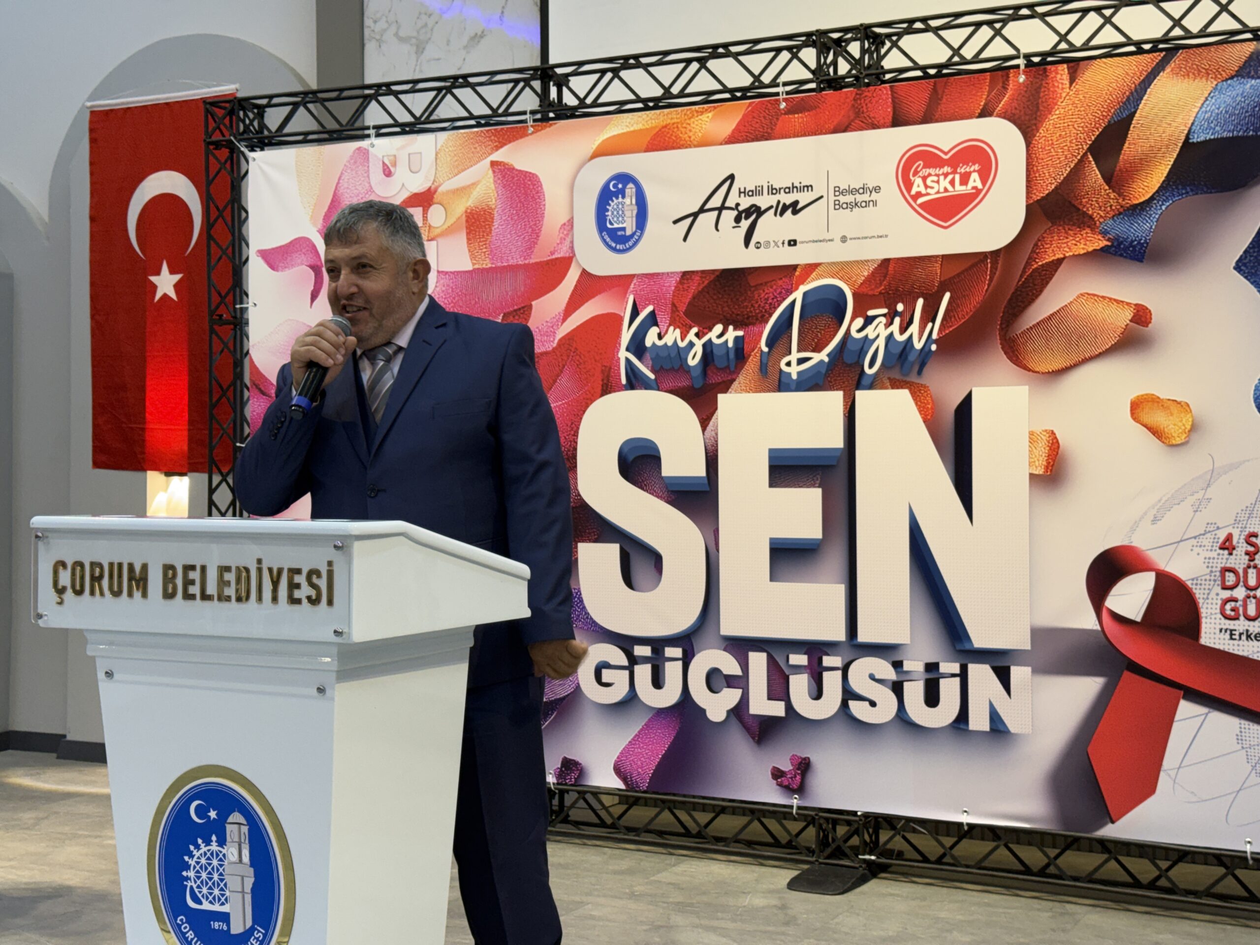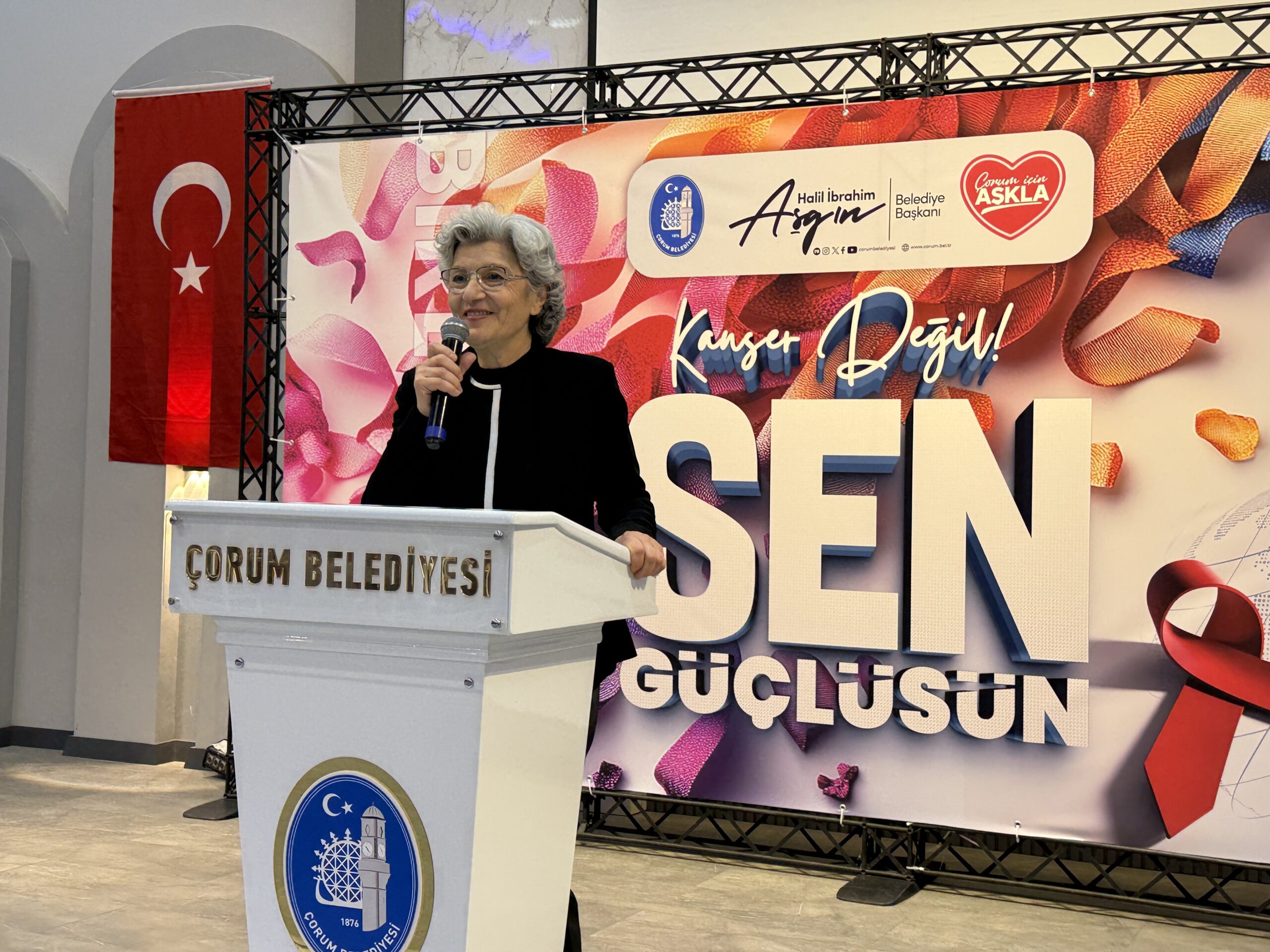 Çorum Belediyesi, 4 Şubat Dünya Kanser Günü dolayısıyla “Kanser Değil, Sen Güçlüsün” başlıklı bir program düzenledi. Hitit Turizm Mesleki ve Teknik Anadolu Lisesi Salonu’nda gerçekleştirilen programa; Belediye Başkan Vekili Lemzi Çöplü, Belediye Başkan Yardımcısı İsmail Yağbat, belediye meclis üyeleri, Çorum’da kanserle mücadele alanında faaliyet gösteren sivil toplum kuruluşlarının temsilcileri, kanser hastaları ve aileleri katıldı.