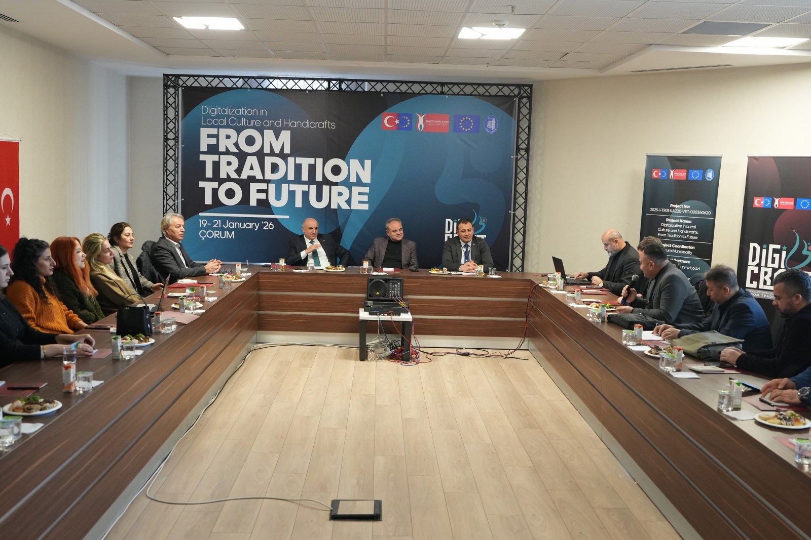 “Yerel Kültür ve El Sanatlarında Dijitalleşme: Gelenekten Geleceğe (DigiCRAFT)” adlı Erasmus+ projesinin açılış toplantısı Çorum Belediyesi’nin ev sahipliğinde gerçekleştirildi. Toplantıya; Belediye Başkan Yardımcısı Turhan Candan, Ulusal Ajans Temsilcisi Dr. Vahit Sadal, Proje Koordinatörü ve Kültür ve Sosyal İşler Müdürü Eray Çetinkaya’nın yanı sıra proje ortaklarından Norveç’ten Frivilligakademiet, Polonya’dan Miejska Strefa Kultury w Łodzi temsilcileri ile Alacalılar Derneği ve Hayatboyu Eğitim Bilim Kültür ve Sanat Derneği temsilcileri katıldı.
