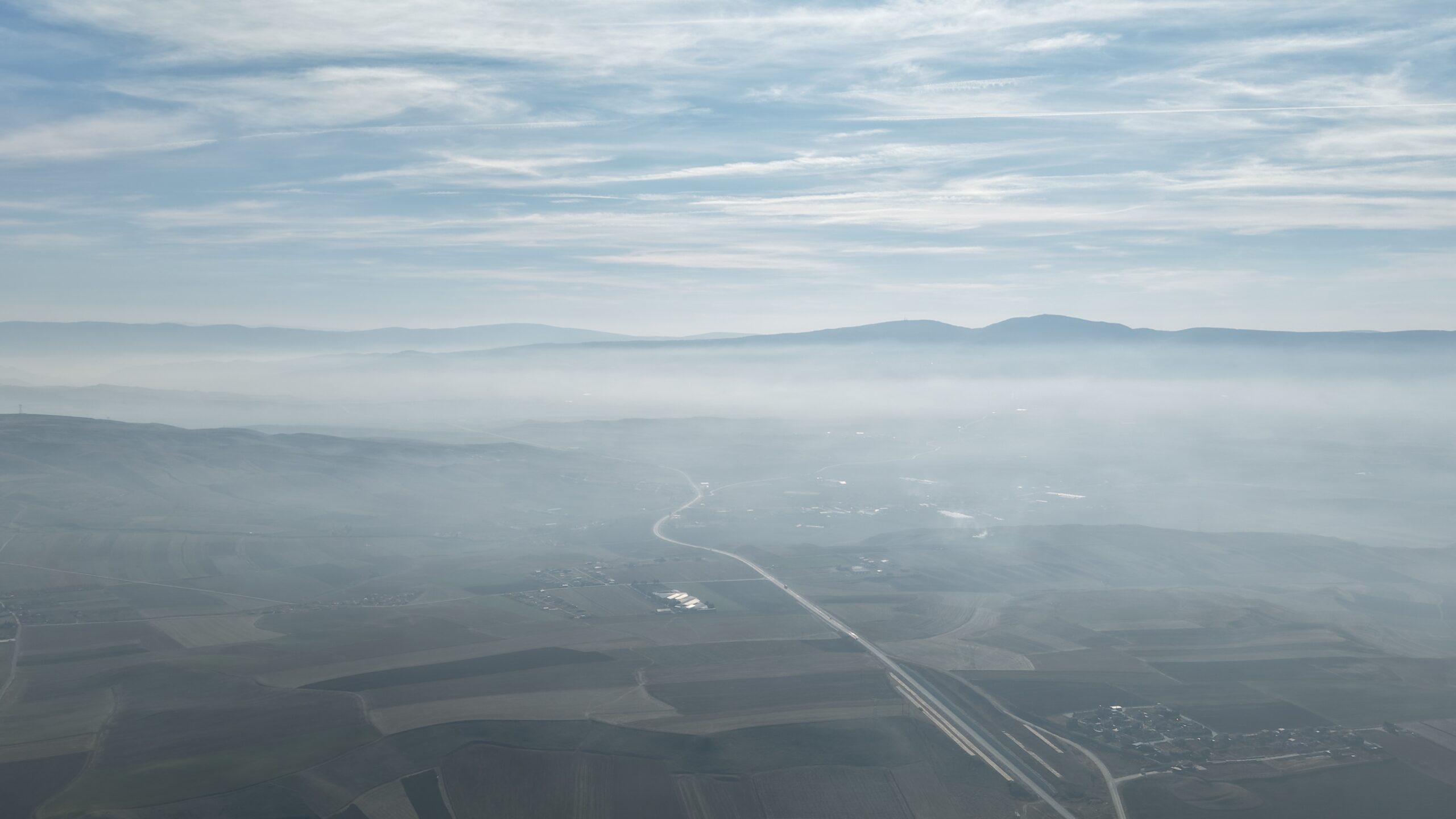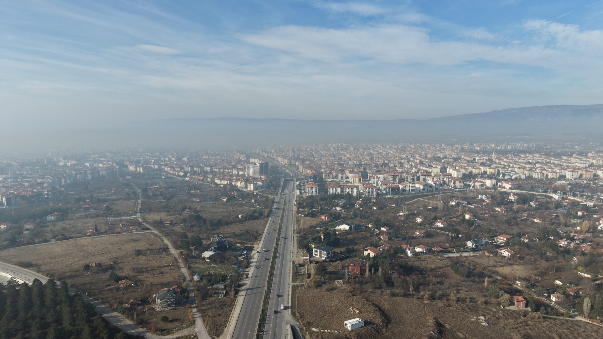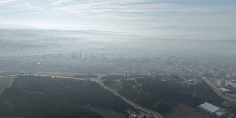 Şehri gri bir örtü gibi saran sis tabakası, havadan çekilen görüntülerle etkileyici bir manzara oluşturdu.