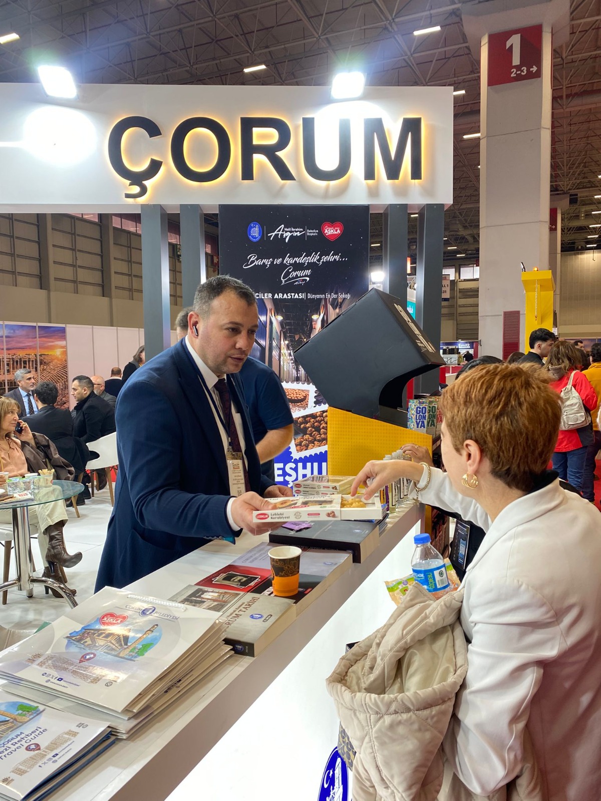 İstanbul’da yaşayan Çorumluların da ilgiyle ziyaret ettiği stantta, Çorum Belediyesi Kültür ve Sosyal İşler Müdürü Eray Çetinkaya, kentin yöresel lezzetleri ve kültürel değerleri hakkında bilgi verdi. Ziyaretçilere leblebi, Çorum baklavası, leblebi kurabiyesi ve Çorum su böreği ikram edilirken, belediyenin kültür yayınlarından oluşan tanıtım materyalleri de hediye edildi.