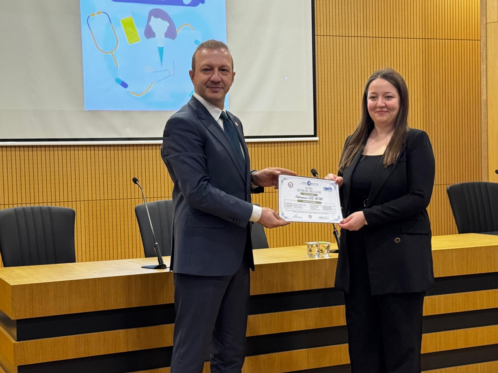 Program kapsamında gerçekleştirilen değerlendirme sınavında dereceye giren ilk dört kursiyere, Belediye Başkan Yardımcısı Lemzi Çöplü ve Çorum Eczacı Odası Başkanı Erol Afacan tarafından plaket ve sertifikaları takdim edildi. Tören sonunda programa katılan tüm kursiyerlere sertifikaları verildi.