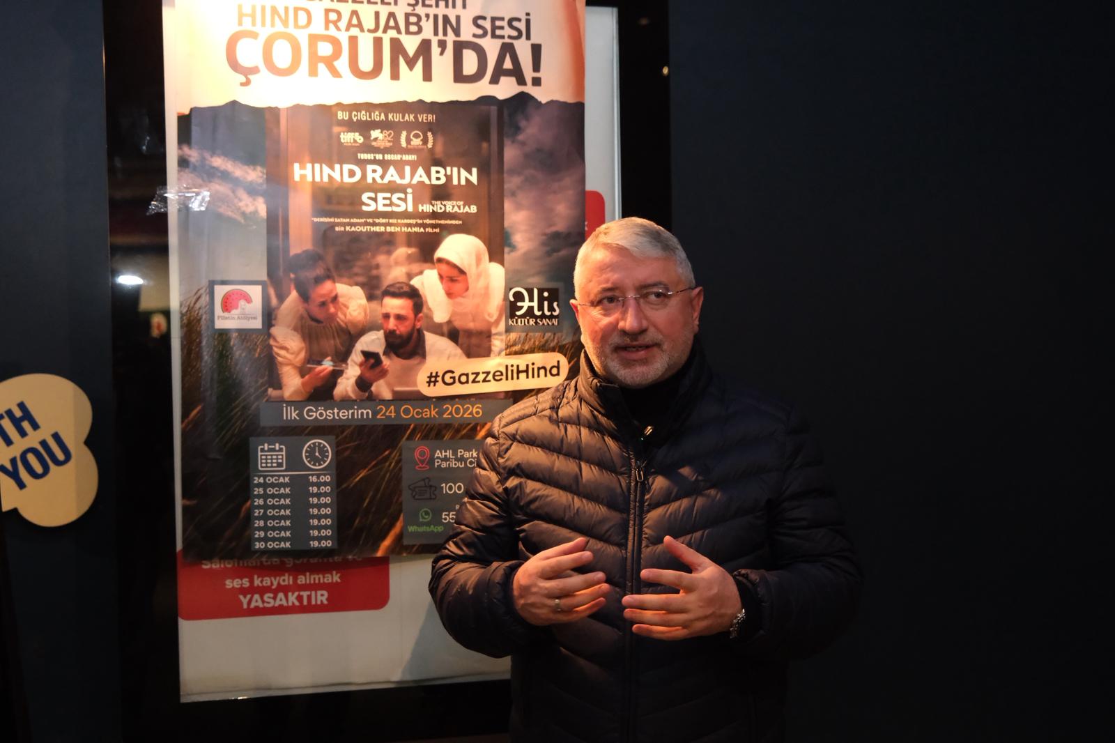 Gazze’de yaşanan insanlık dramını altı yaşındaki bir çocuğun gözünden anlatan “Hind Rajab’ın Sesi” (The Voice of Hind Rajab) filmi, Çorum’da özel gösterimde izleyiciyle buluştu.