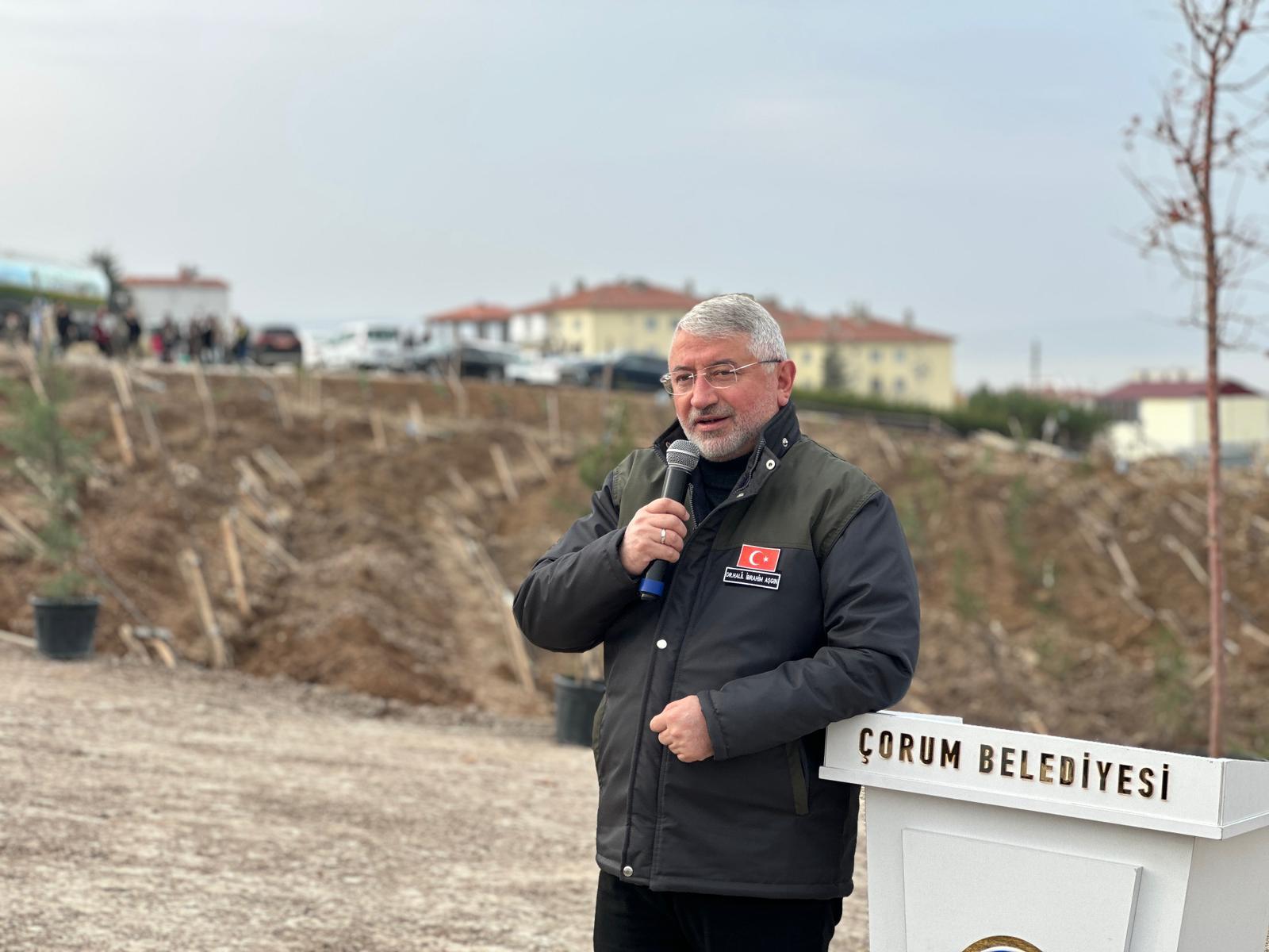Etkinlikte konuşan Belediye Başkanı Dr. Halil İbrahim Aşgın, doğayı koruma ve çevre bilincini güçlendirme hedefiyle çalıştıklarını belirterek, “Doğayı korumak, gelecek nesillere daha yeşil bir Çorum bırakmak için çalışmalarımızı kararlılıkla sürdüreceğiz. Ülkemiz için büyük anlam taşıyan Milli Ağaçlandırma Günü’nde, şehrimize nefes olacak yeni bir yeşil alan kazandırmanın mutluluğunu yaşıyoruz. Türkiye genelinde milyonlarca fidanın toprakla buluştuğu bu anlamlı günde, biz de Çorum olarak bu seferberliğin bir parçası olmaktan gurur duyuyoruz.” dedi.