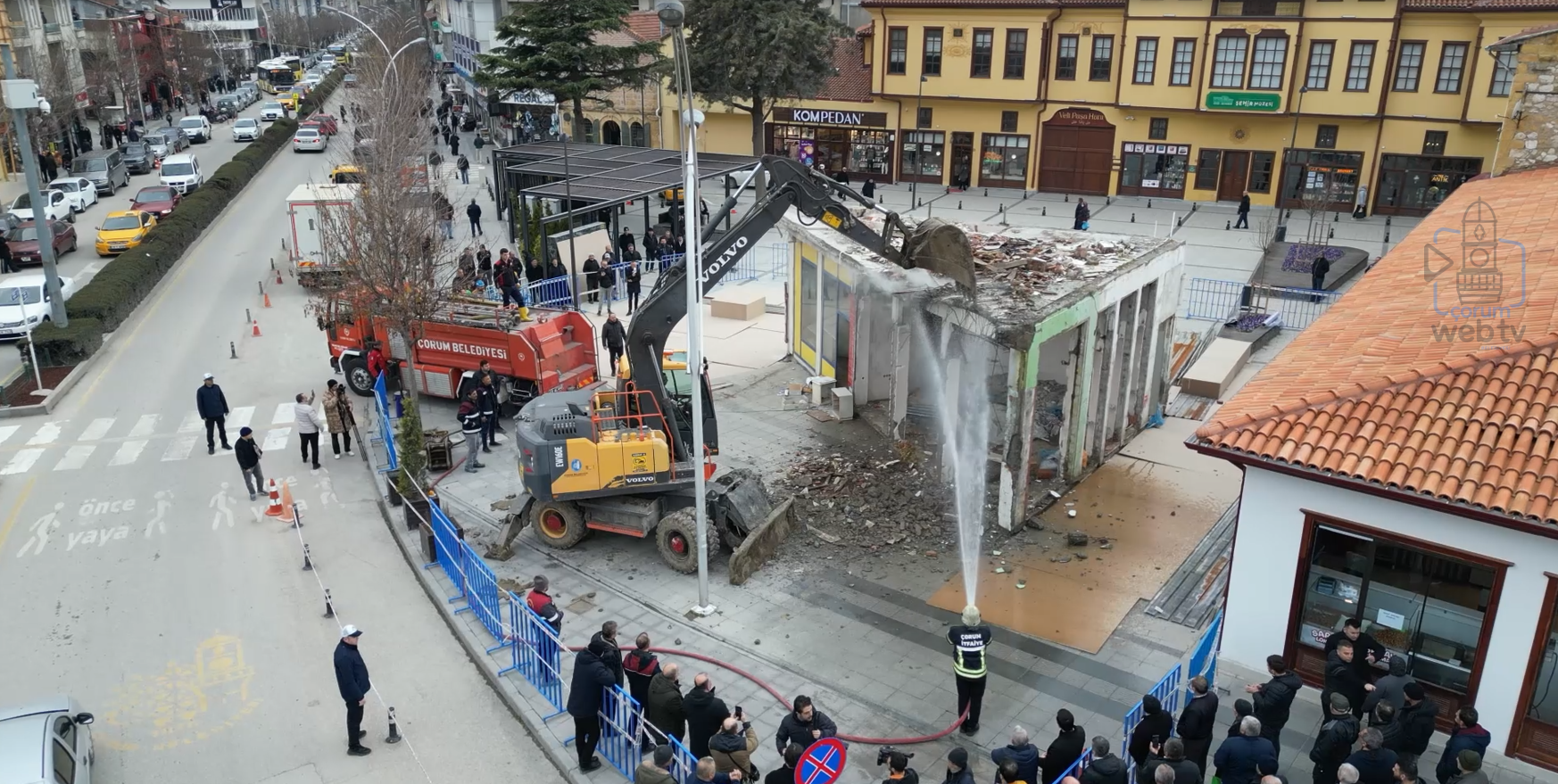 Çorum’un çehresini değiştiren, şehre yeni bir kimlik kazandıran “Tarihi Şehir Meydanı” projesinde önemli bir an yaşandı. Belediye Başkanı Dr. Halil İbrahim Aşgın’ın kararlılığıyla sürdürülen 2. etap çalışmaları kapsamında, Veli Paşa Hanı’nın önünü kapatan son yapı olan anahtarcı dükkanının kamulaştırma ve tahliye süreci tamamlandı. Belediye ekiplerince gerçekleştirilen yıkımla birlikte, asırlık Veli Paşa Hanı tüm ihtişamıyla gün yüzüne çıktı.